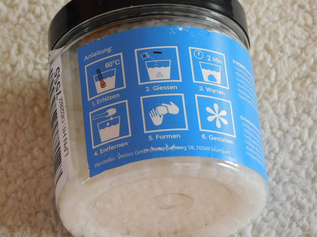 Es ist eine formbare, fortschrittlische Modeliermasse, welches in der Ausgangsphase ein Perlgranulat ist.